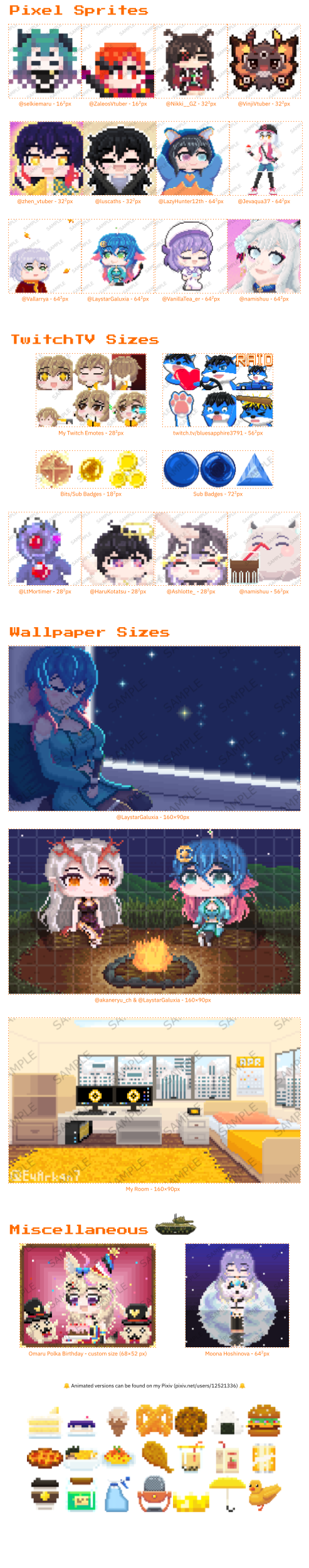 I will send you a png/gif (preferably through Discord or Email) of the actual size and an enlarged version of it (usually by 2000% larger). Other sizes can be requested.